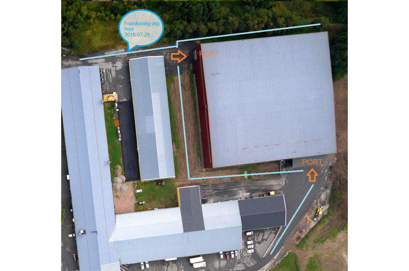Två stora portar (i öster & norr) för effektiv in- och utlastning.